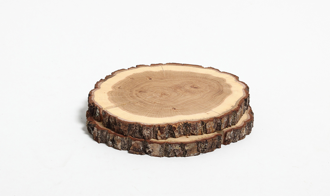 Sottopiatti 100% legno di quercia, ricavati da un tronco [Fleux, ø da cm 20 a 24 €18,90/2pz].