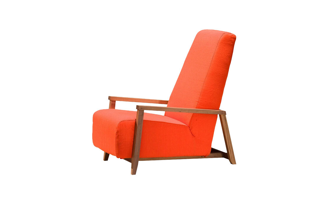 Seduta imbottita e rivestimento tessile a scelta nella poltrona Sweet [Gervasoni, cm 64x97x103h, prezzo su richiesta].