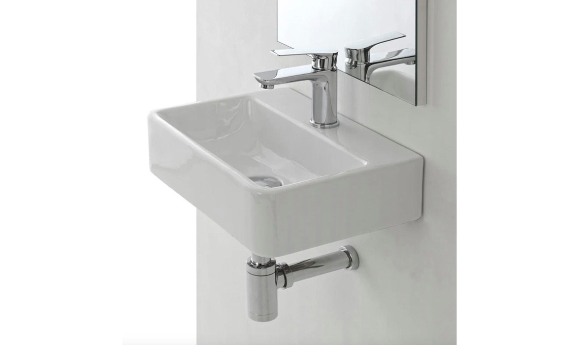 Lavandino sospeso in ceramica rettangolare compatto Feridras [su bricobravo.com, cm 40x29,5x