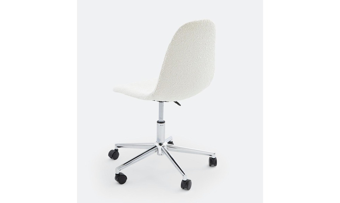 Sedia da scrivania Lally con base in acciaio con ruote, seduta ad altezza regolabile e rivestimento bouclé [La Redoute, ø cm 59x83,5/95h € 98,99].