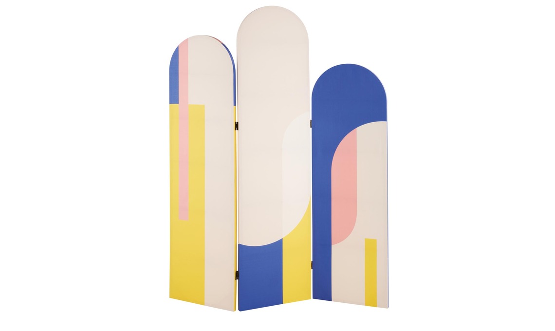 Paravento Ain pieghevole in mdf blu, giallo e rosa [Maisons du