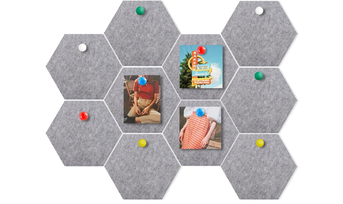pannelli esagonali in feltro e sughero [Suprbird, cm 17,7x15 € 15,99/10 pzi].