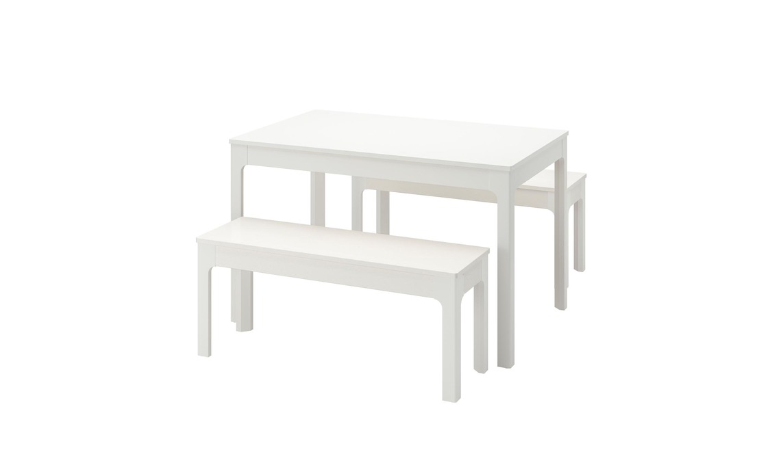 Tavolo allungabile Ekedalen con due panche [Ikea, cm 80x120/180x75h e cm 105x36x45h € 397].