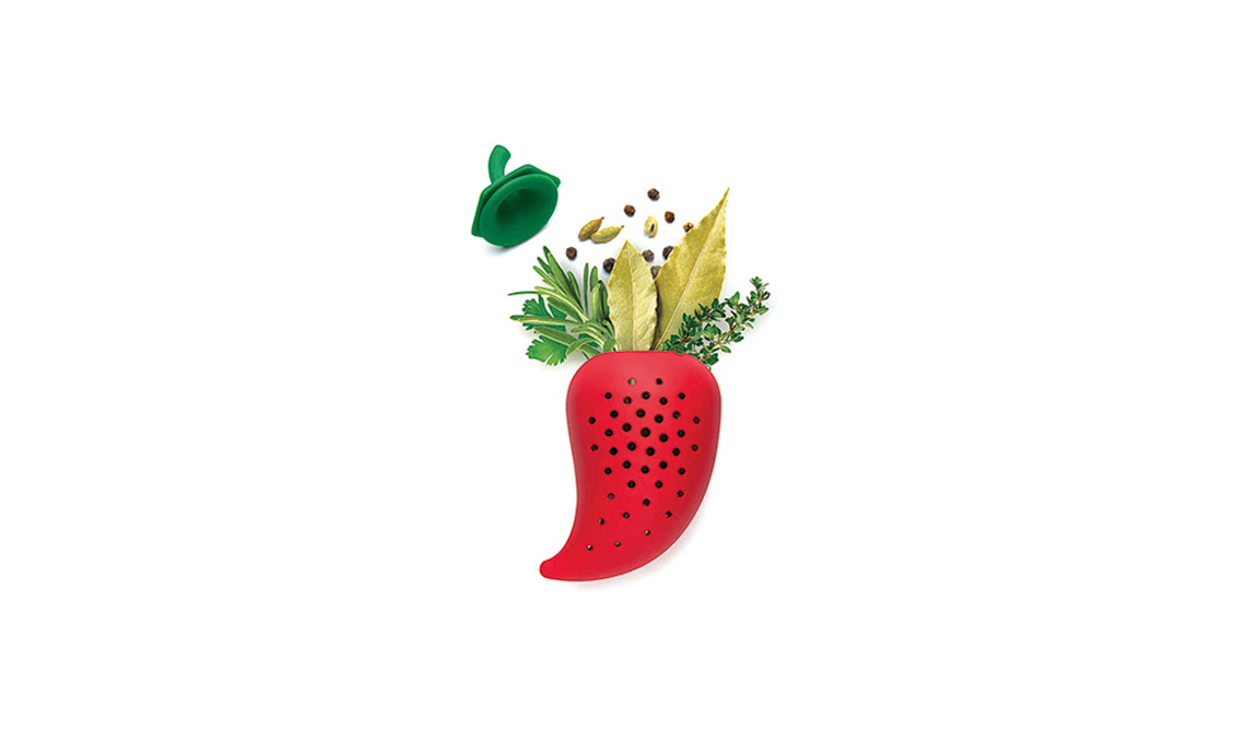 Infusore di erbe in silicone Chili Herb, per insaporire stufati, zuppe e minestre [Luckies, cm 7x6x13,5 da €12,80].
