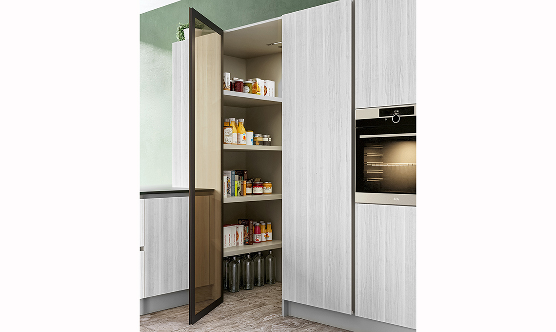 Sfrutta l’angolo l’armadio ‘walk in’ da cm 130x90 (con illuminazione interna) da usare come dispensa e ripostiglio.