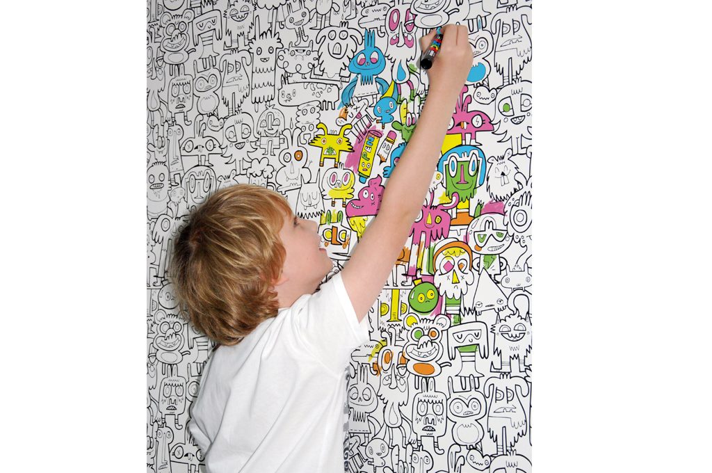 Burgerdoodles è la tappezzeria tipo fumetto tutta da colorare [Burger, il rollo da m 10x52 cm €44,77].