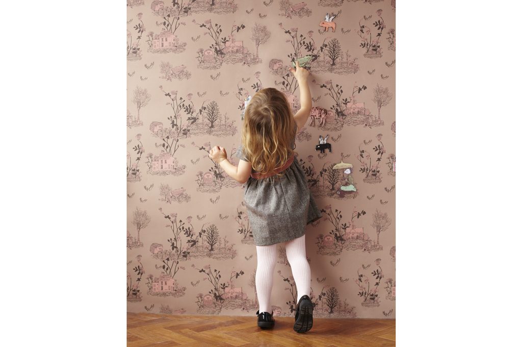Magici animaletti decorano la carta Enfant Foret [Lillipinso, il pannello da cm 50x250h €45].
