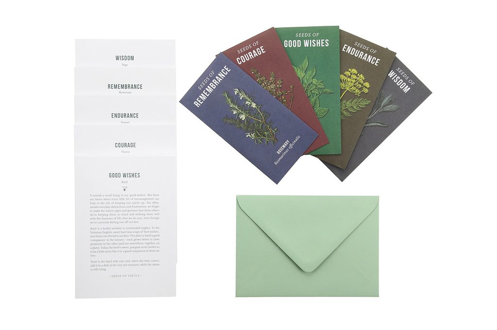 In ogni bustina di semi una pianta è associata ad una virtù: ecco il set da regalo più green! [Polite €28].