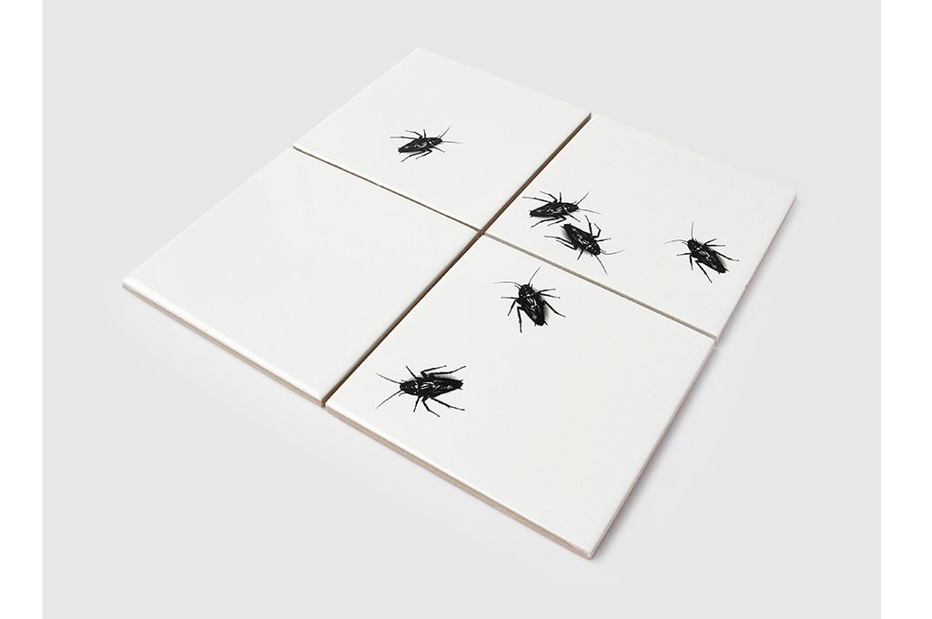 Dedicate a chi non teme gli scarafaggi, le piastrelle per la cucina o per il bagno: ad alto tasso di ironia...! [Atypyk, cm 10x10 prezzo su richiesta].
