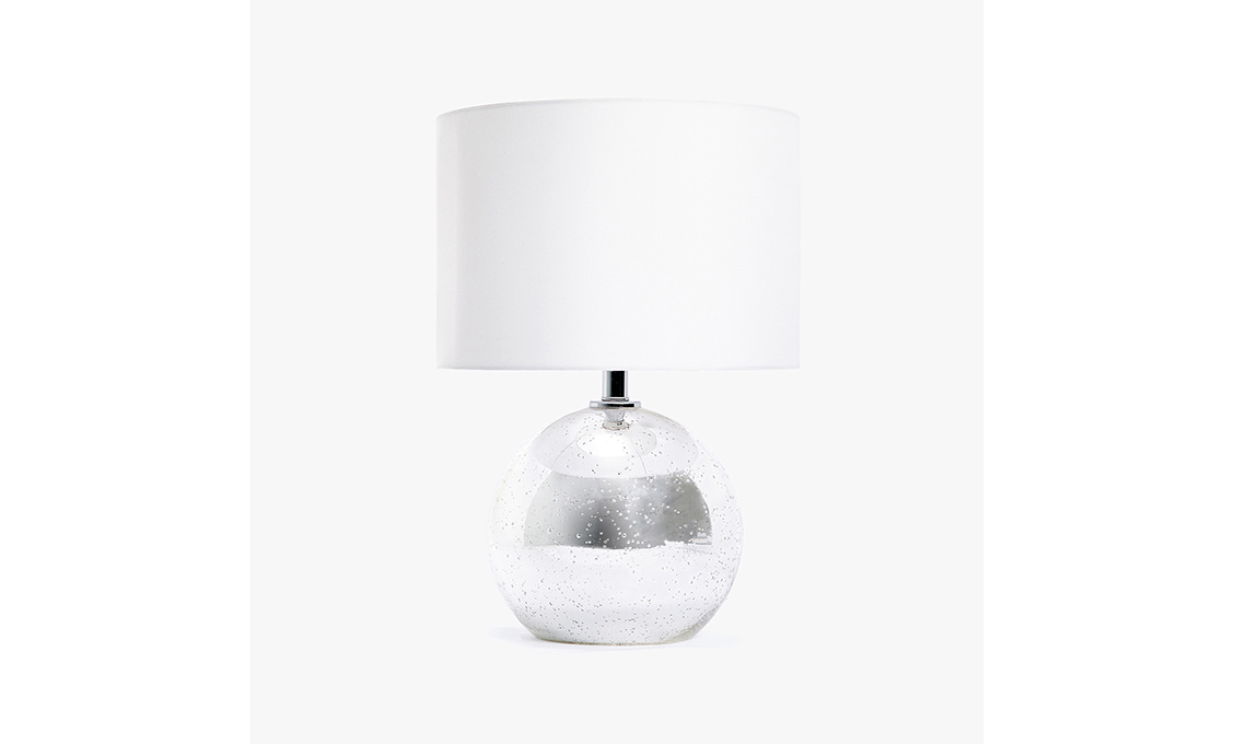 Base sferica in vetro con bolle per l’abat-jour con paralume bianco [Zara Home, ø cm 29x 55h €89,99].