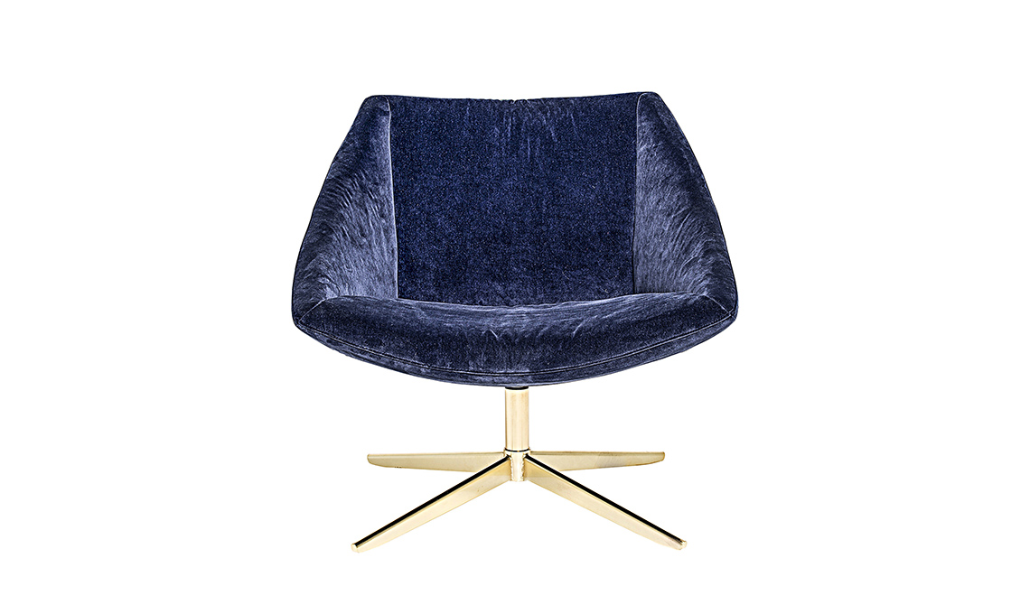 Base girevole in metallo dorato per la poltrona in velluto di poliestere, anche rosa [Bloomingville, cm 77x76x73h €1.099].
