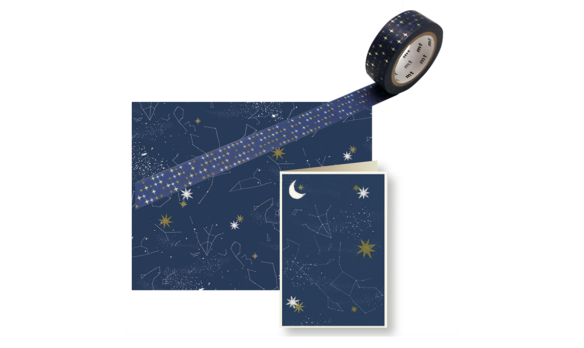 Costellazioni sulla carta e biglietto augurale [Tassotti]. Washi tape con stelle [mt masking tape].