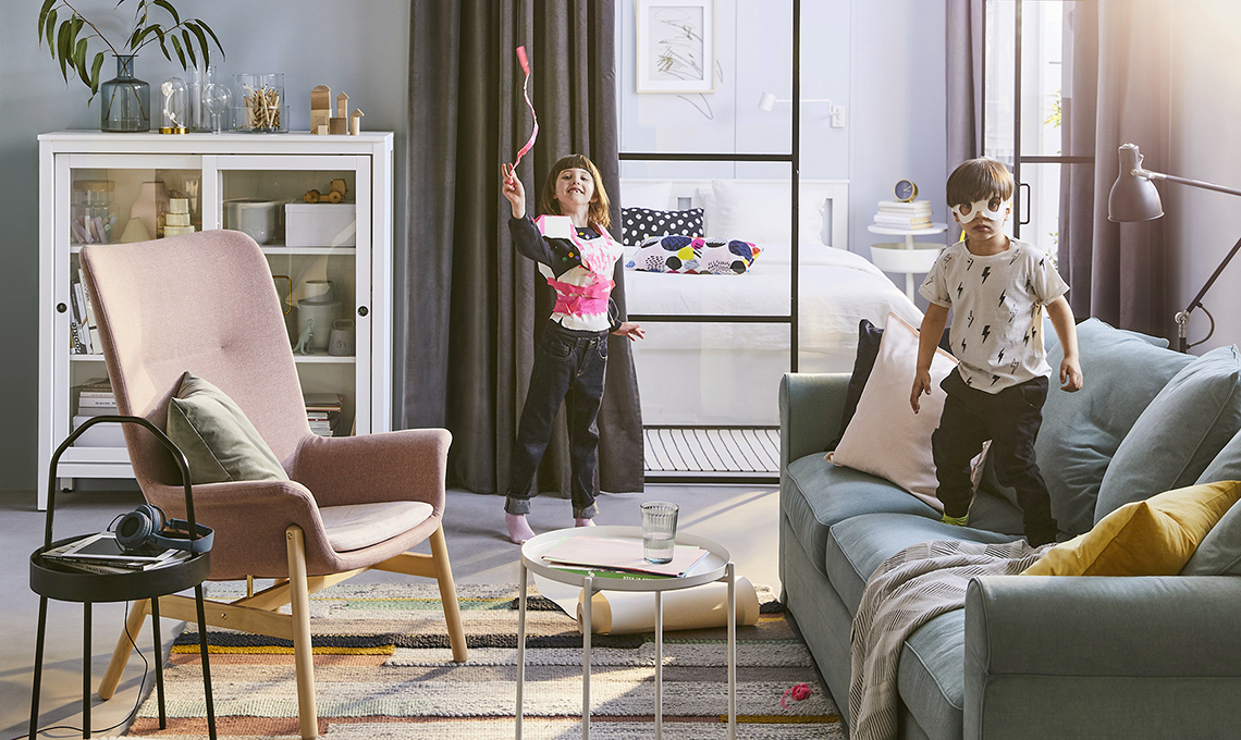 grazie al tavolino Gunnared e ai braccioli spostabili; e resiste ai gatti dispettosi [Ikea, cm 169x84x79h €595 ].