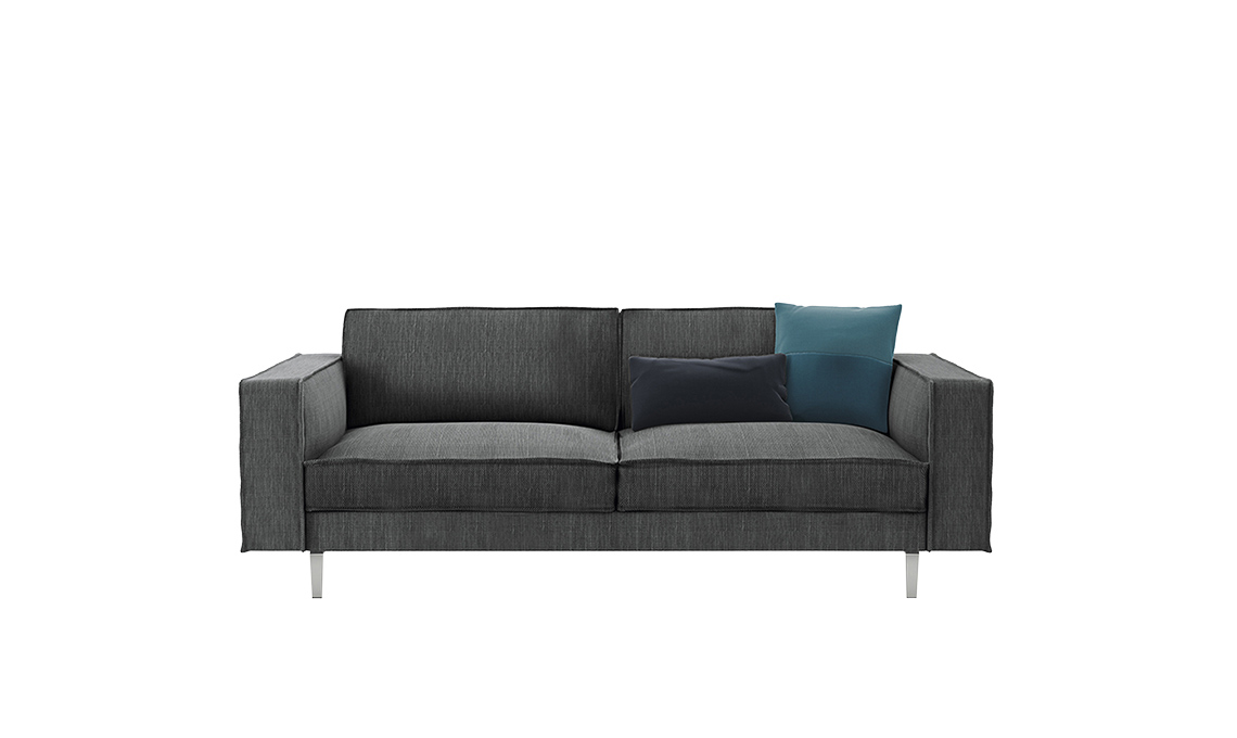 Rivestimento antimacchia, idrorepellente e ignifugo. Imbottitura in poliuretano espanso a differenti densità per Esprit, qui in grigio [Max Divani, cm 208x97x84h €1.978].