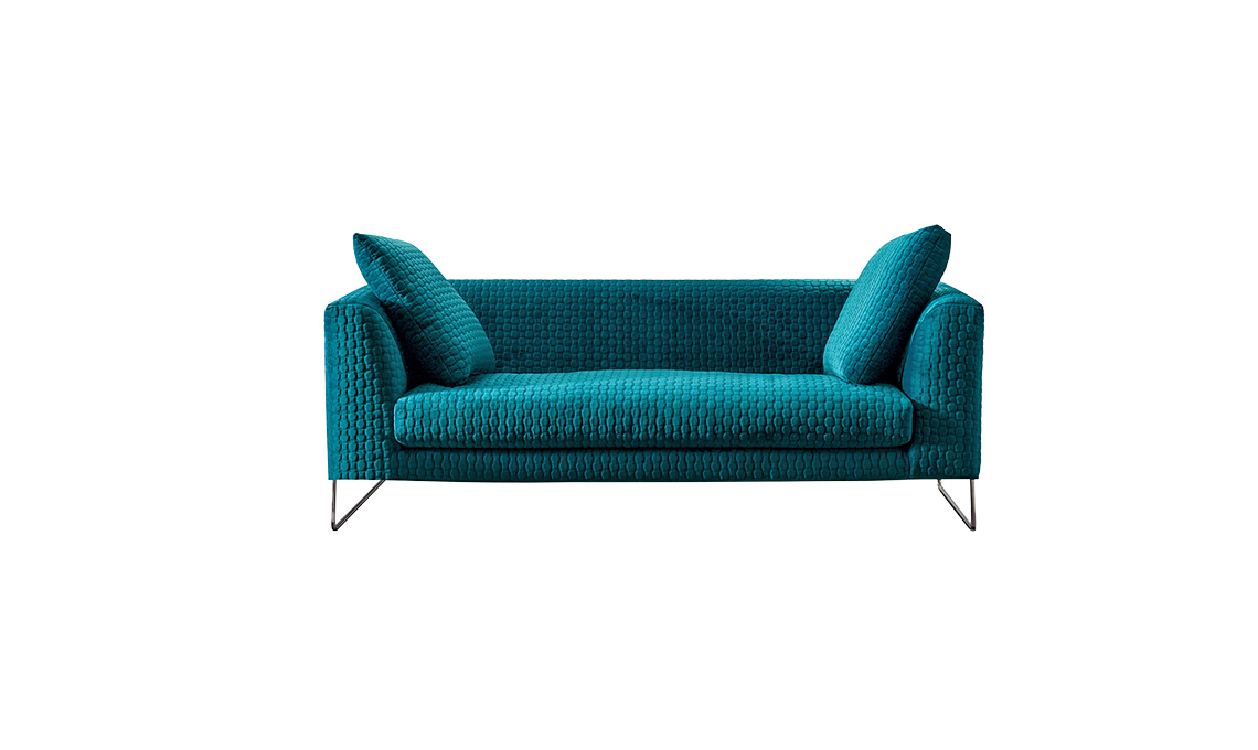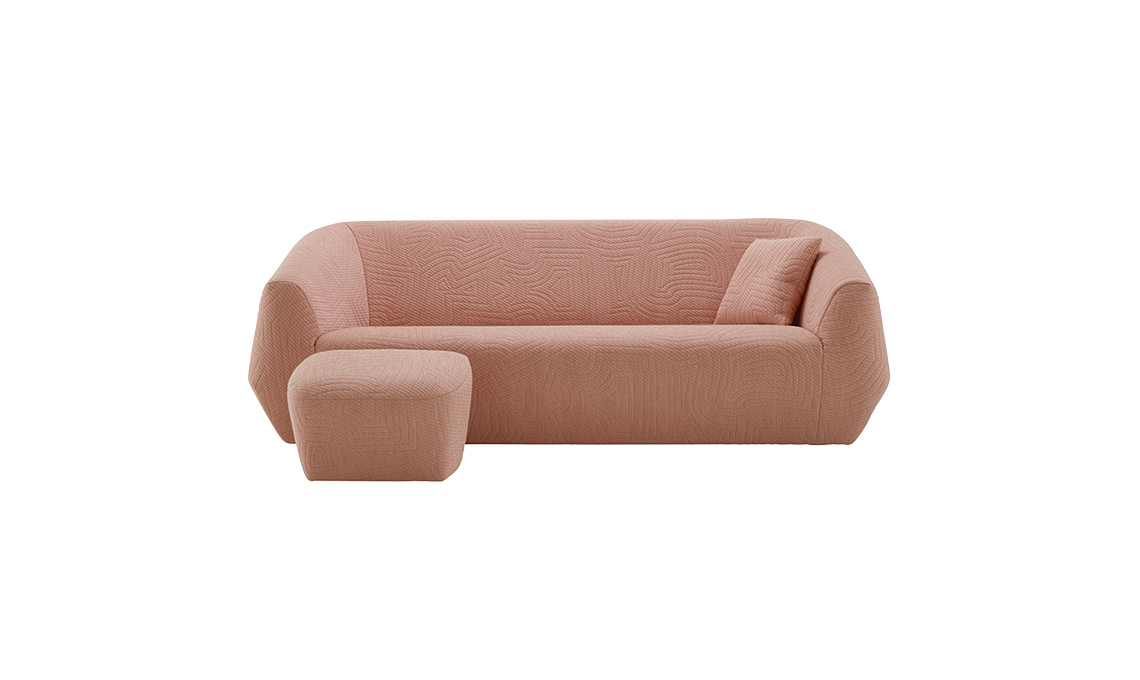 Il tessuto trapuntato aiuta a mimetizzare le macchie. èS ha seduta con molleggio a cinghie elastiche incrociate. Disponibile ottanio, giallo, bordeaux e beige [Twils Lounge, cm 206x95x90h €2.810]