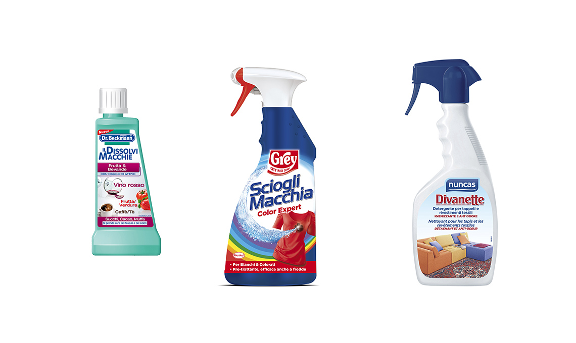 Dissolvimacchie [Dr. Beckmann €3,28]; Sciogli Macchia Color Expert [Grey €3,09]; Divanette [Nuncas €8,30].