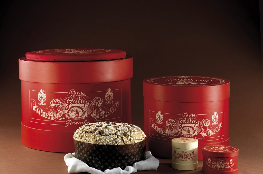 In versione maxi, il panettone con scatola rétro che si trasforma in pouf con tanto di cuscino [Galup, Kg 10 € 320]