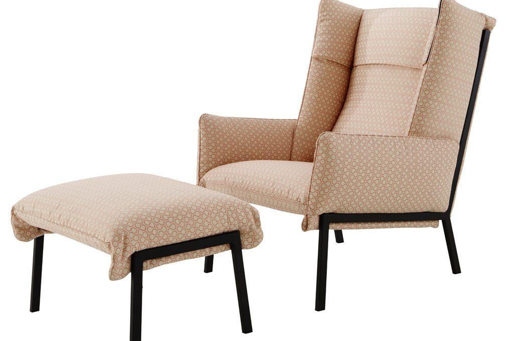 Femminile la poltrona Beau Fixe con poggiapiedi coordinato [Ligne Roset, cm 80x106x97h €1.997 la poltrona]