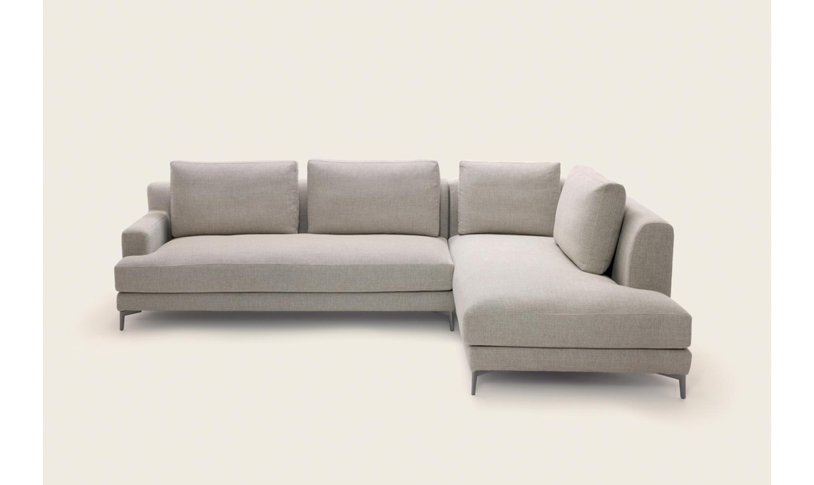 Divano Portofino in tinta neutra dal design minimal e dalle forme eleganti con sedute profonde dotate di funzionali cuscini poggiareni