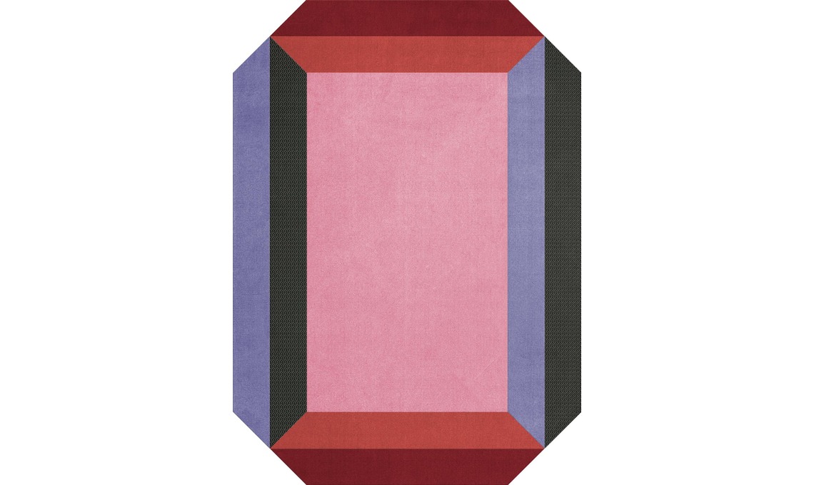 Tappeto esagonale in lana Teklan Crystal Spettro in cinque colori dal disegno geometrico che crea un vivacissimo effetto 3D