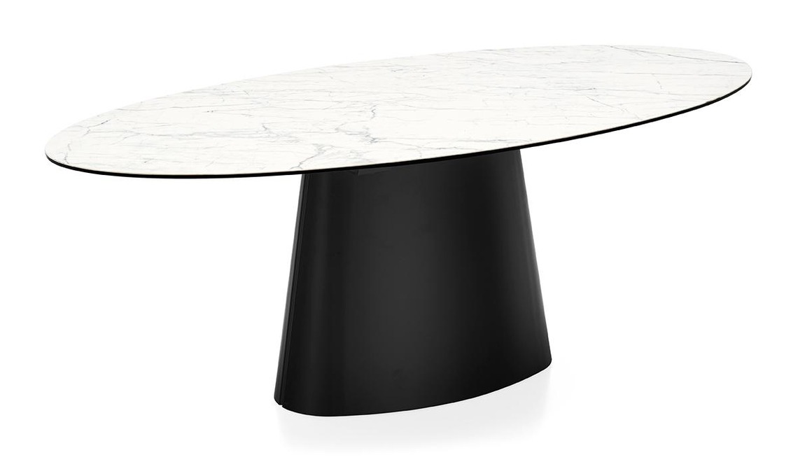 tavolo Ellisse con top in ceramica e base in lamiera curvata verniciata [Connubia, cm 200x100x75h].