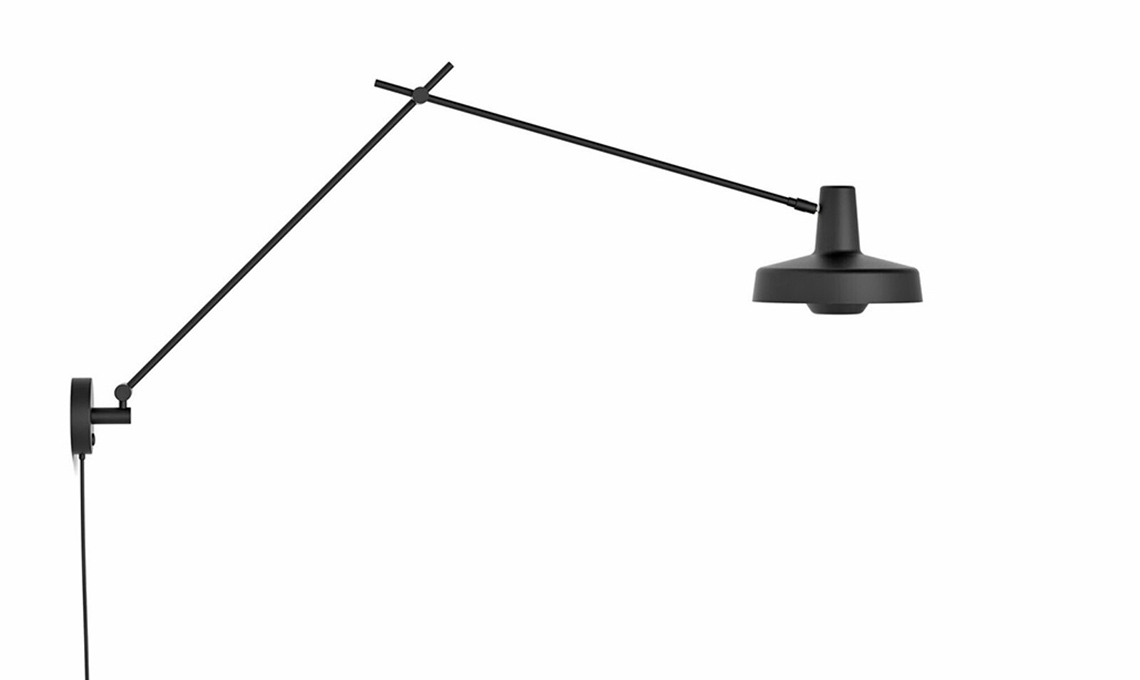 Con braccio snodabile e orientabile la lampada Arigato [Grupa Products, ø cm 22x74 € 293].