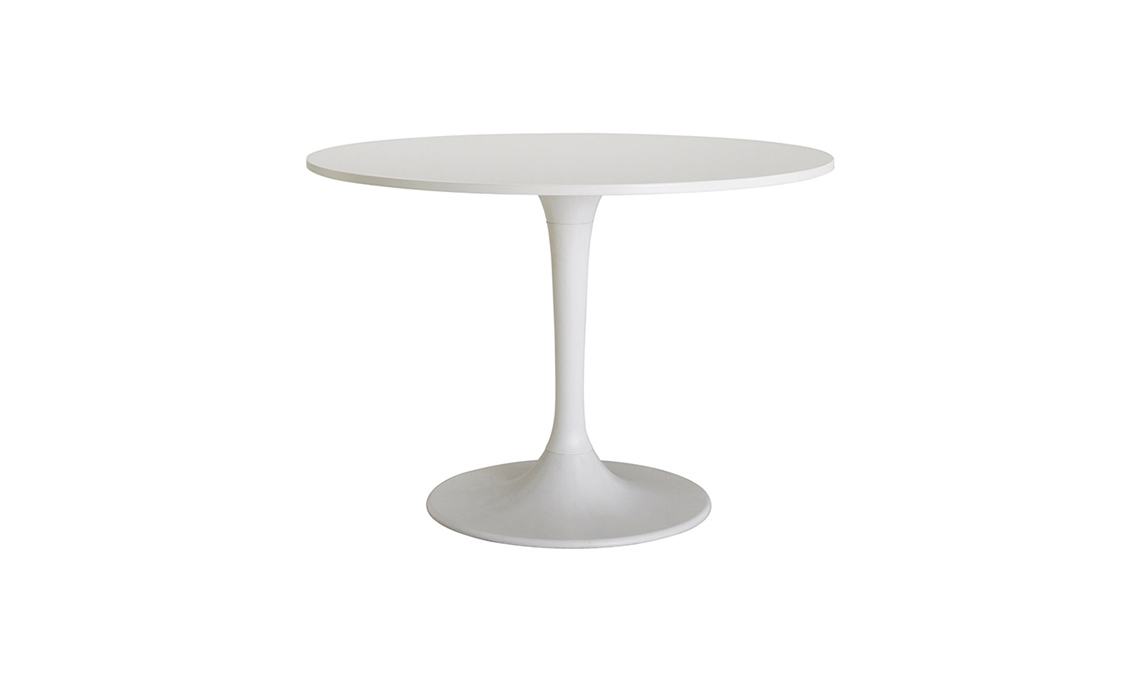 Progettato per resistere all’uso quotidiano: Docksta, in laminato, acciaio e plastica ABS [Ikea, ø cm 103x75h €140].