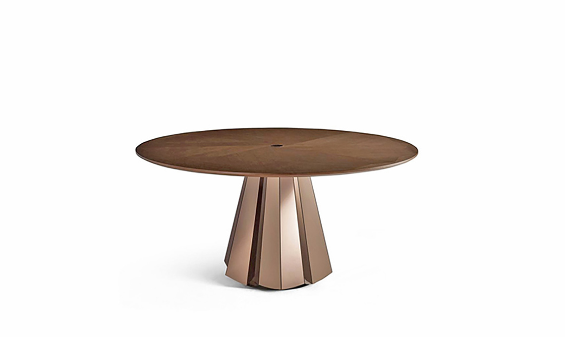 Con base sfaccettata Girasol, in finitura bronzo [Roche Bobois, ø cm 135x75h € 4.640].
