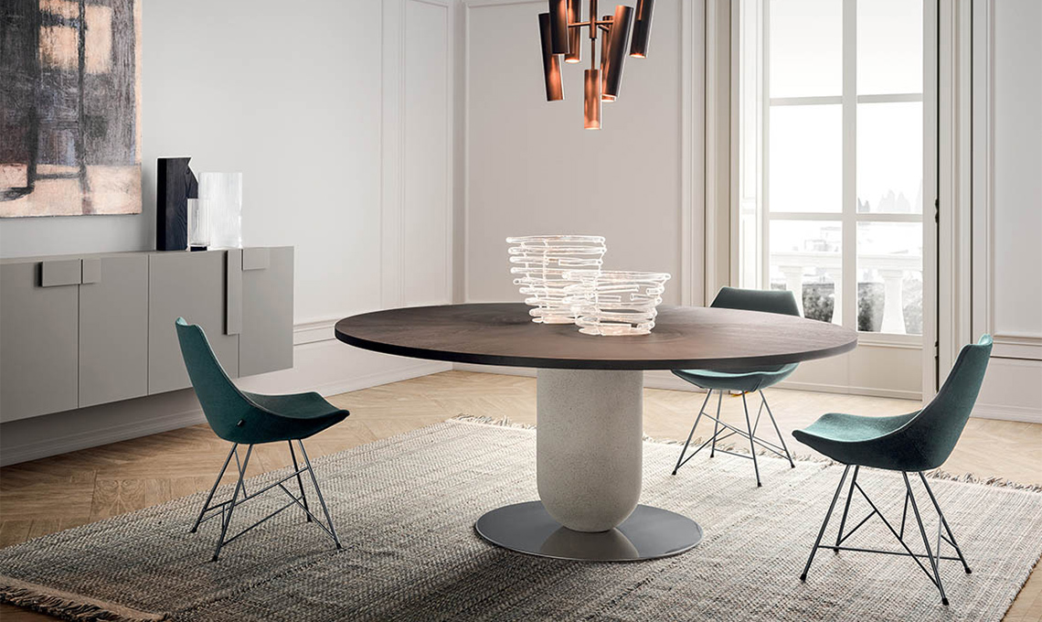 e vetro effetto marmo per Vortex [Calligaris, ø cm 120x75h da €1.977].