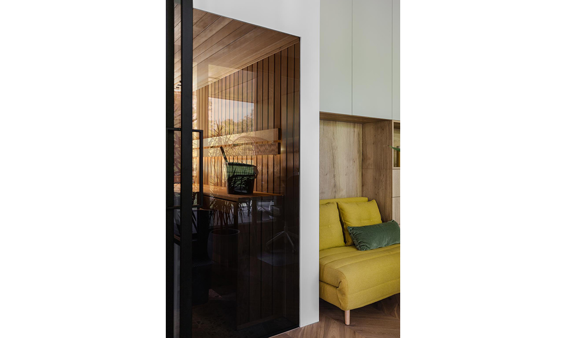 e allineata alla profondità delle basi (perché risulti proporzionata) ha la funzione di far passare l’impianto canalizzato, permettendo l’uso di griglie di aerazione: così si evitano split e radiatori a vista. Il loro colore (nero) si accorda al design intorno.