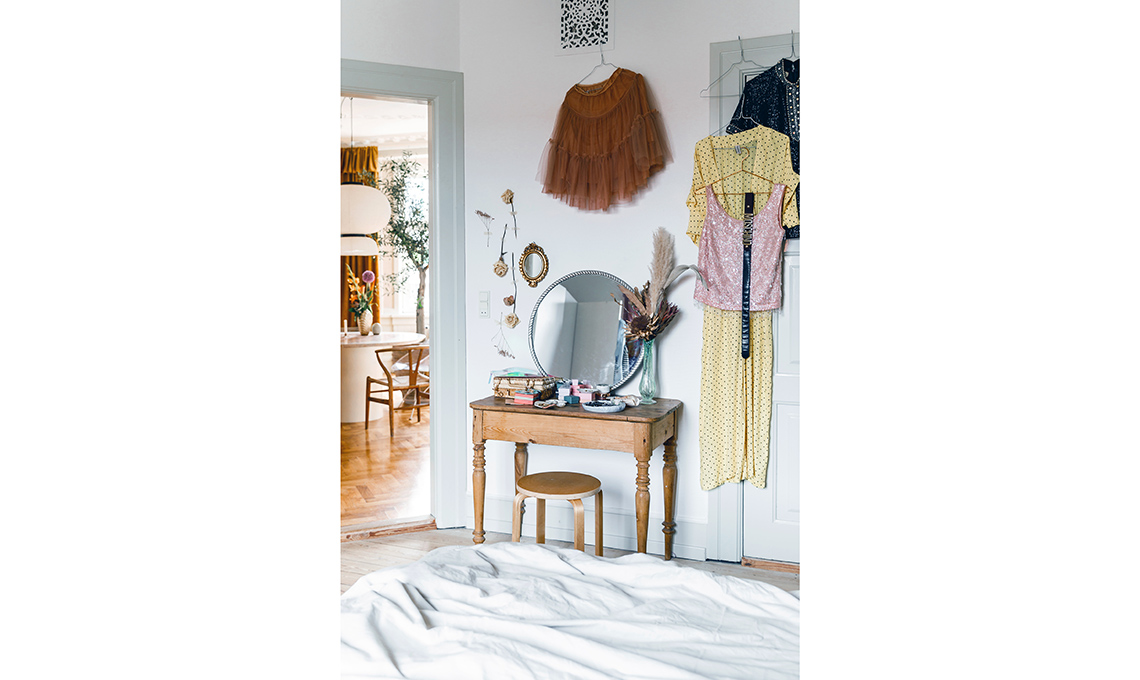 appesi al muro sono il match perfetto con la cornice dorata, lo specchio, i ninnoli e la collezione di vestiti vintage.