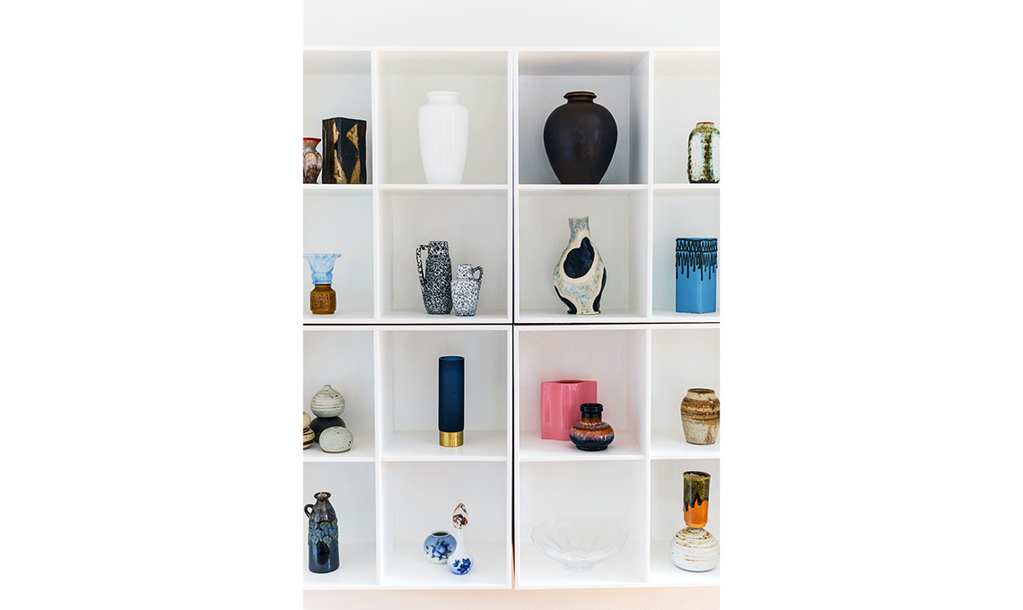 Come un museo: sugli scaffali al posto dei libri, c'è la collezione di vasi di Julie.