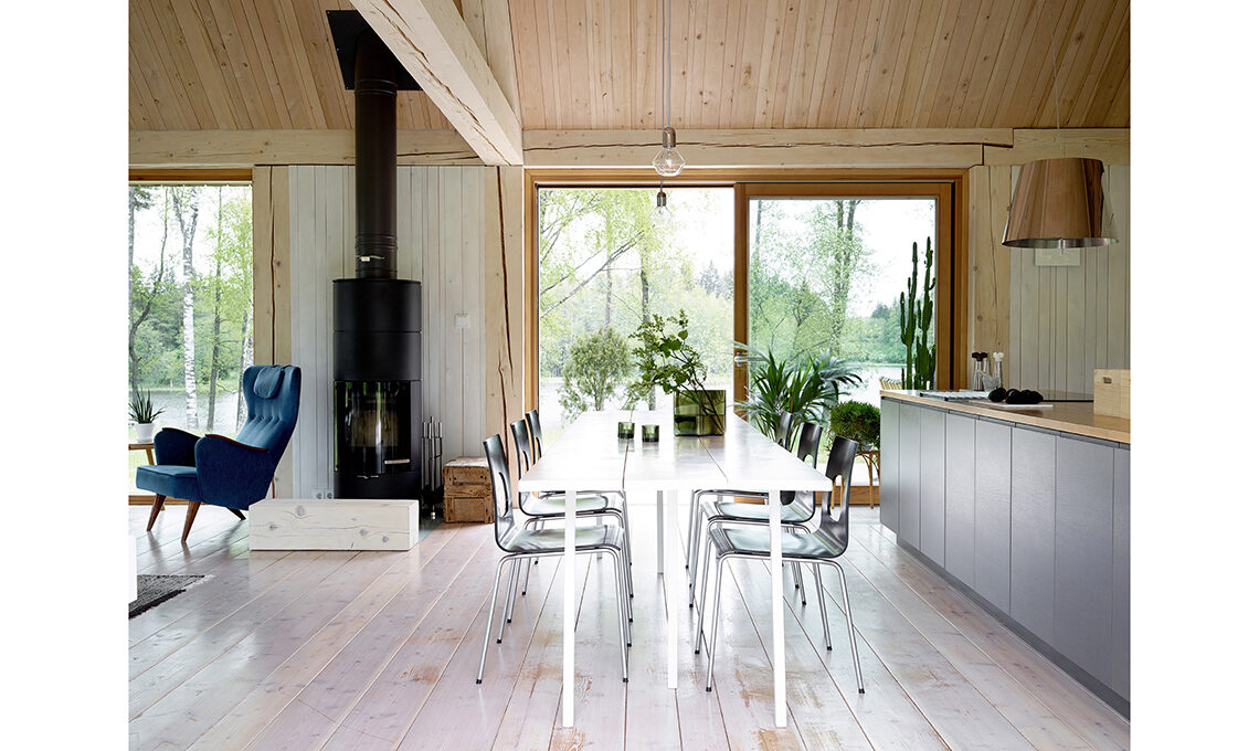 Il verde in questa casa è parte dell’arredo, i mobili sono ridotti all’essenziale. Tutto, in casa Nyström, è rivisitato e modificato secondo le esigenze della famiglia. I mobili della cucina, dell’azienda finlandese Isku, sono stati realizzati su progetto dei proprietari.