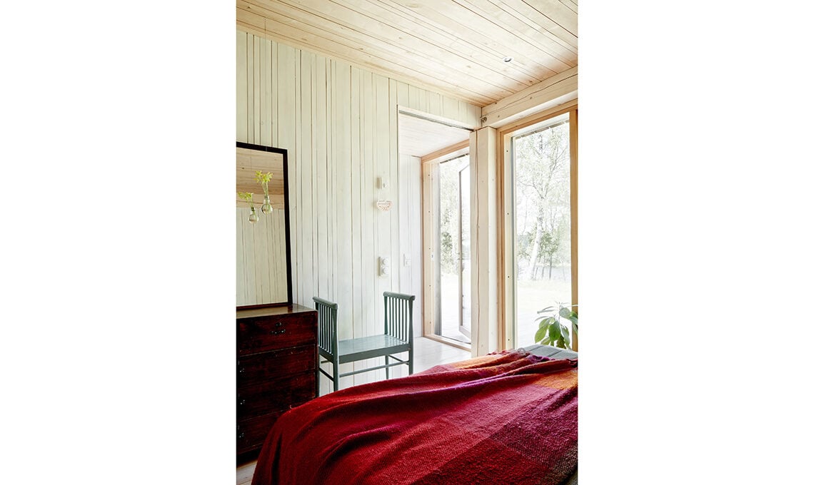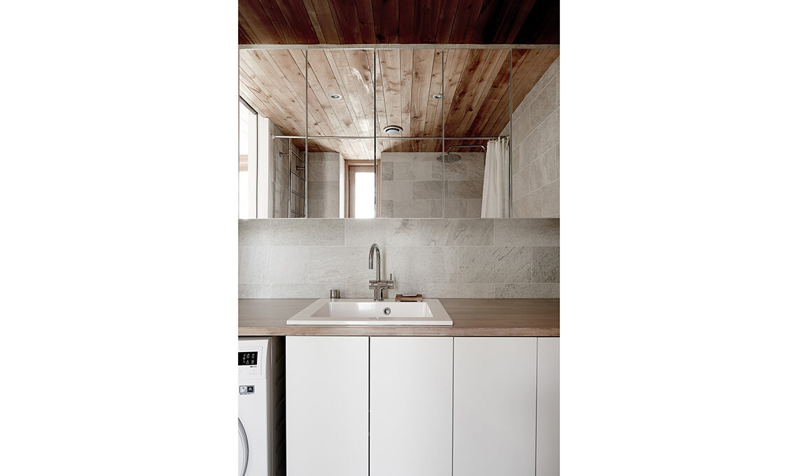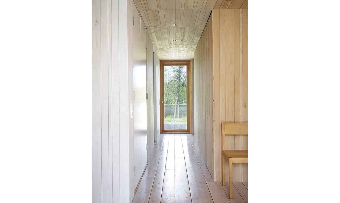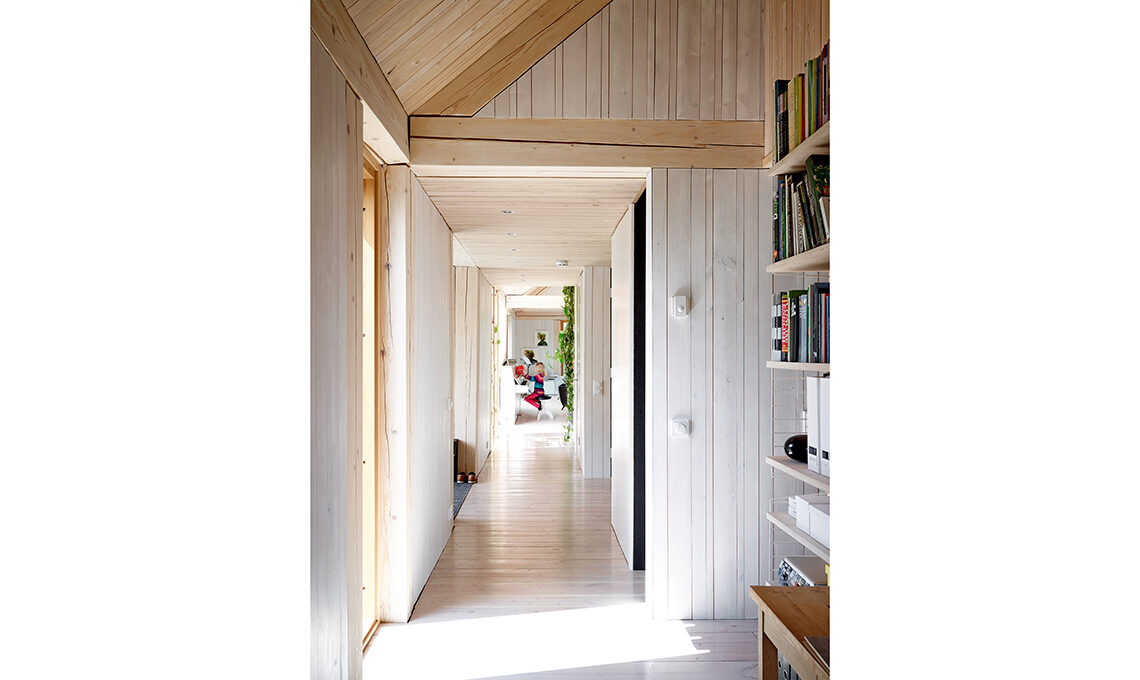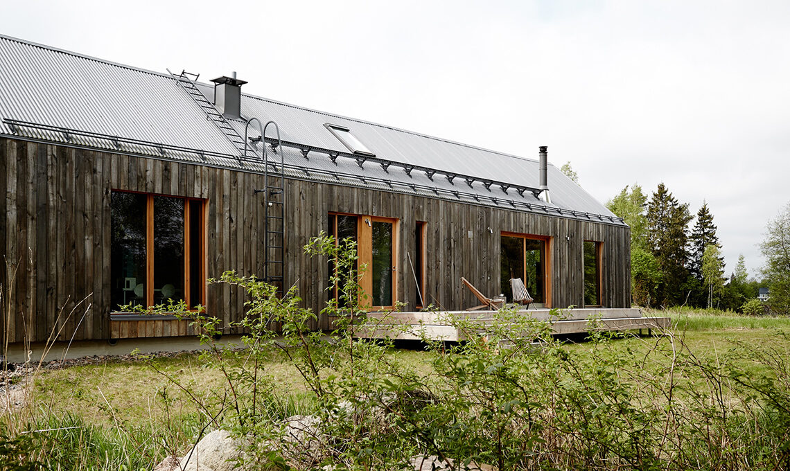 Per le facciate esterne, Mathias ha scelto il pioppo tremulo, che invecchiando diventa di un discreto grigio argenteo, e per il patio l’abete di Douglas, imputrescente.