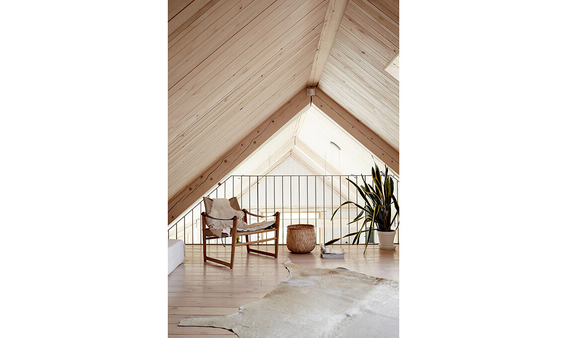 Sul soppalco, sedia Safari di Ikea Anni ’70 trovata in un mercatino vintage; un cesto come quello in foto