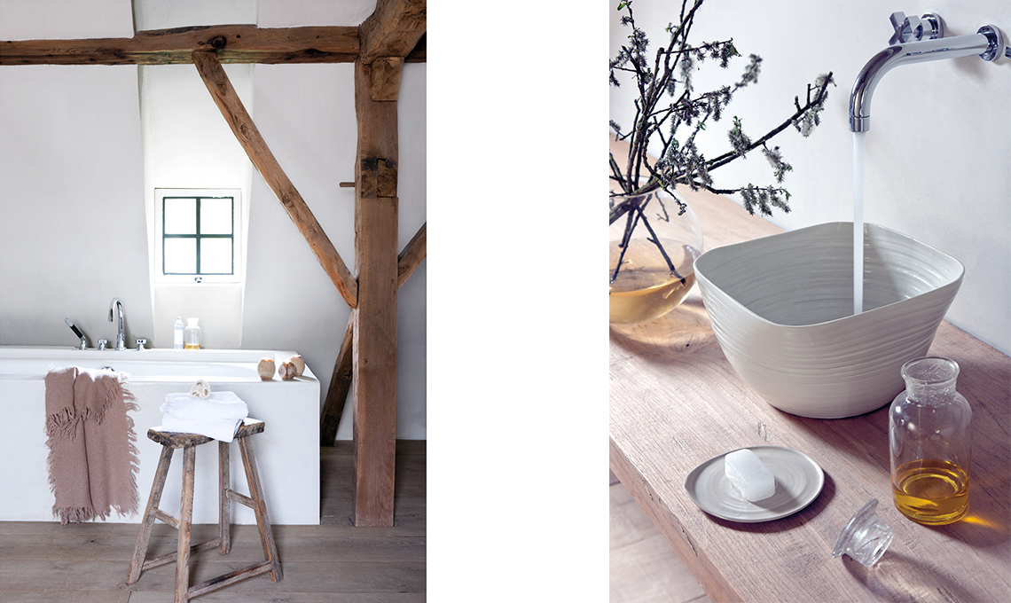 è una creazione dell’artista A. Mewsen. il piano del lavabo è formato da una grande plancia di rovere, spessa circa 10cm, retta da una sottile gamba in metallo.