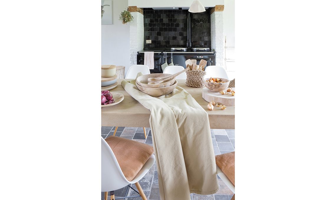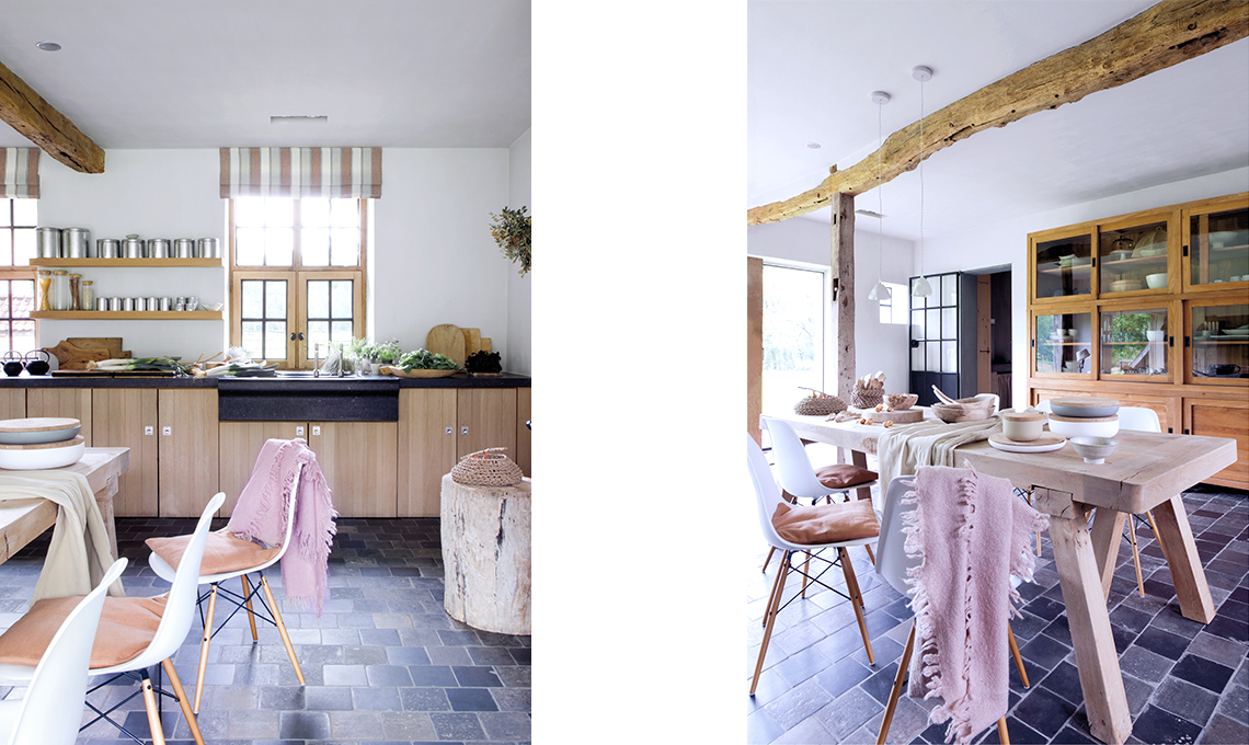 Cerchi un tavolo in legno massello? Travis, in rovere selvatico, ha 6 gambe proprio come quello in foto [Cargo Milano, cm 250x90x 74h cm € 1.890]. Cucina Dual Control [AGA].