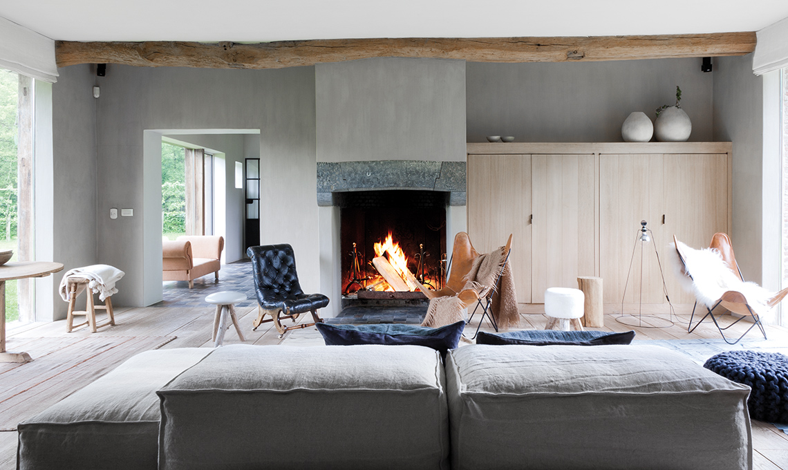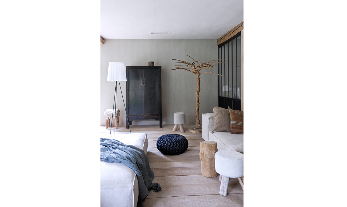 Tutto invita al relax: il legno chiaro di pavimento e mobili, le pareti di un materico grigio che ‘attutisce’ il mondo esterno e tanta, tanta luce che entra dalle grandi aperture (quasi) a tutta parete.