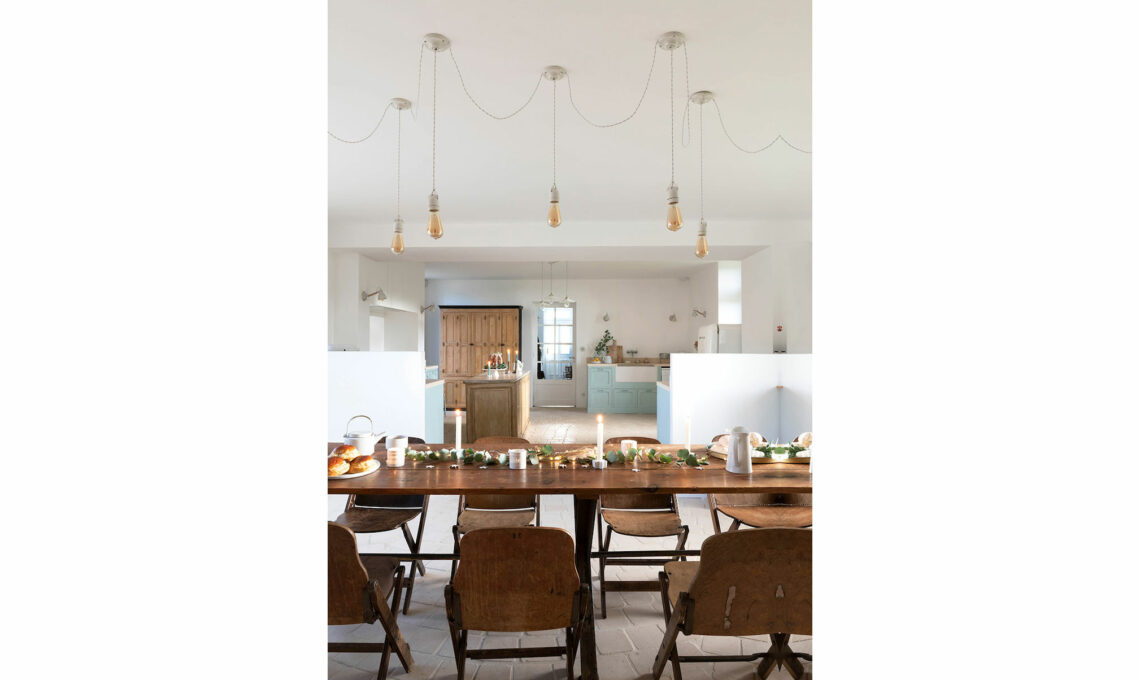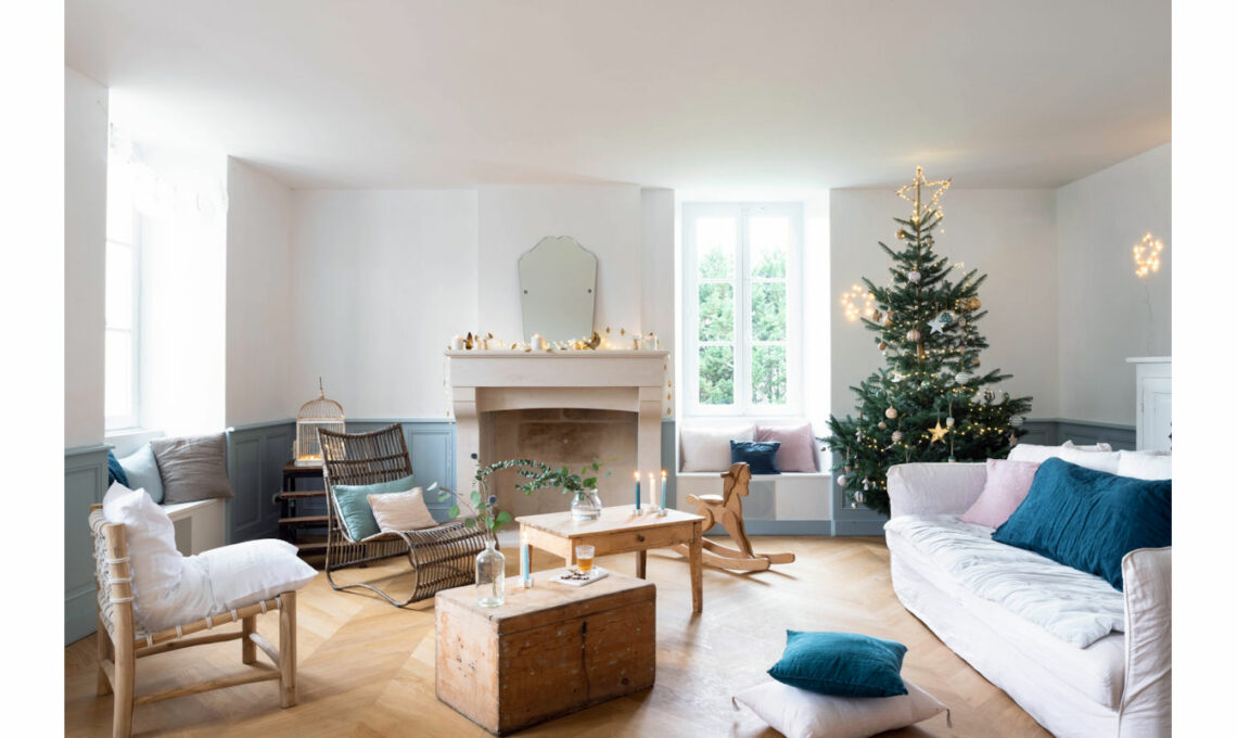 La palette neutra, dove il caldo miele del legno sfuma nei toni pastello, si accende di festa con i tocchi d'oro, i rami di eucalipto, il luccichio delle candele. La casa inizia a trasformarsi per il periodo più magico dell'anno!