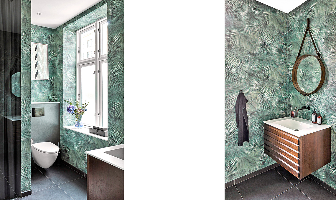 Lo specchio Adnet è un’icona del Modernismo francese [Gubi €680]. Se cerchi mobili sottolavabo simili a questo, guarda la serie Connect Space in finitura noce scuro di [Ideal Standard]. Per un pavimento simile in piastrelle in grès effetto pietra e di grande formato, c’è la collezione Ever [Iperceramica, da 11,99/mq].