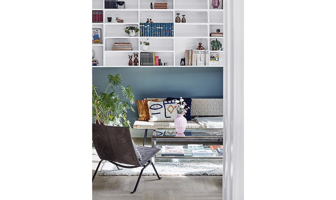 Nella biblioteca, le poltroncine sono le PK 22 firmate da Poul Kjaerholm nel 1956 [Republic of Fritz Hansen €4.094]; coffee table vintage di Romeo Rega: sul portale Pamono trovi tanti pezzi del designer