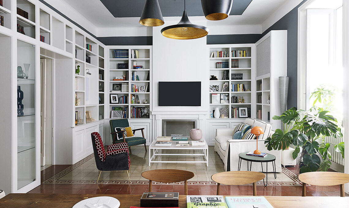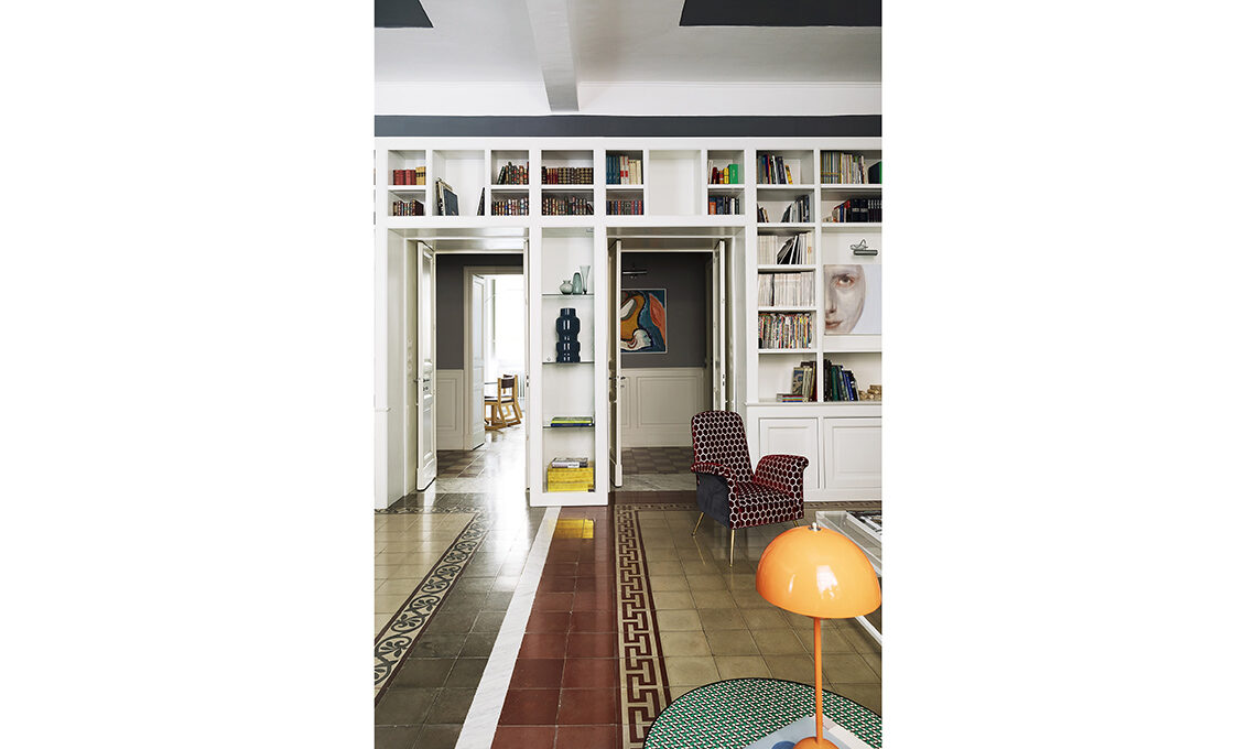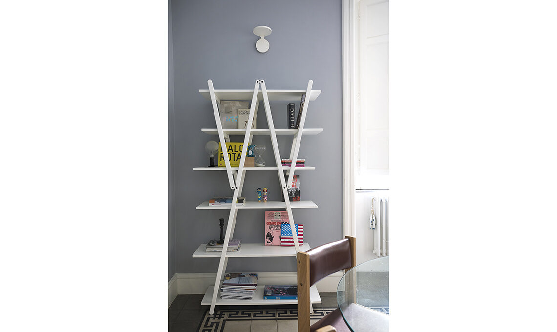 Un evergreen la libreria Nuvola Rossa di Vico Magistretti [Cassina da € 3.275], applique Rea parete [Artemide da € 205].