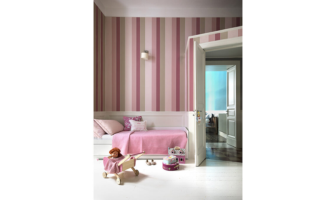 Cerchi una carta da parati a righe rosa? Cerca il mod. ‘Riga garden rosa’ [Leroy Merlin, cm 53x10,05 m € 33,90/pz]. Per altri modelli e motivi dedicati ai bambini, ma tutti bellissimi, cerca anche le wallpaper di [Roomblush] e [Hovia].