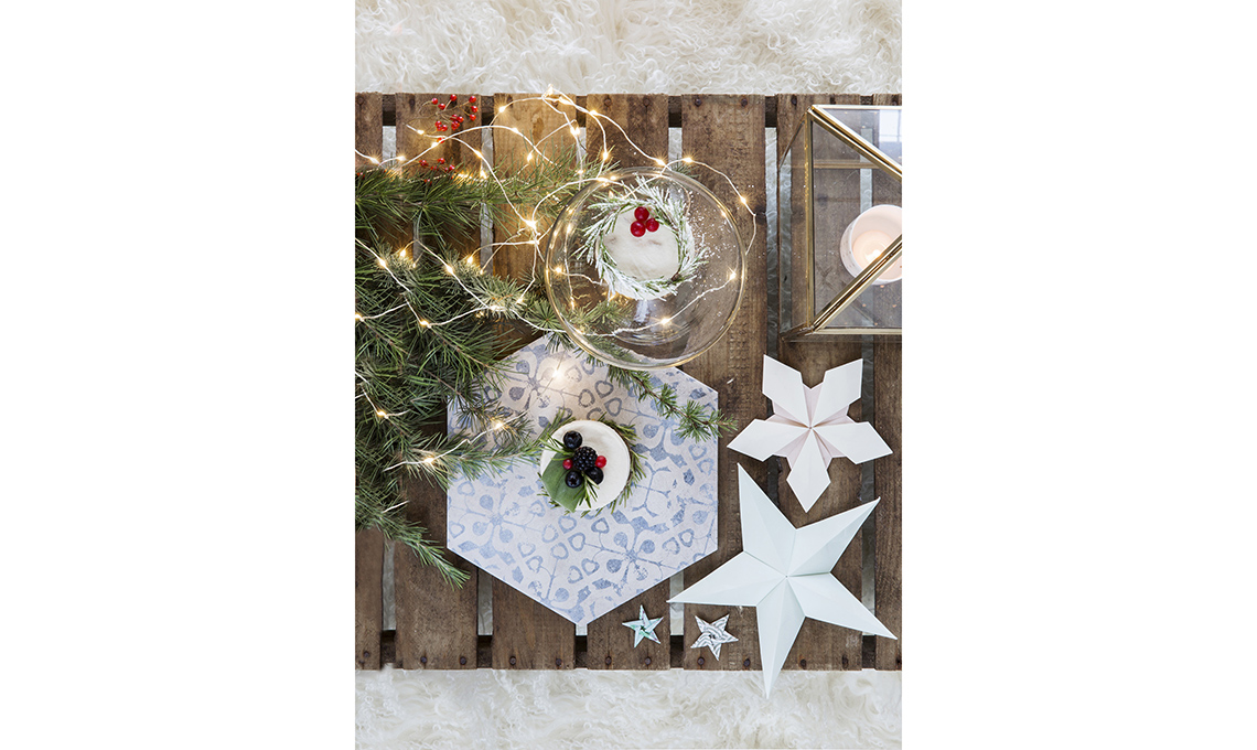 Mattonella [Andrea Marchese Srl], Stelle di carta [Opificio Imaginarium], cassetta di legno [€50] con le luci e tappeto [€205] tutto [Fiorirà un Giardino]. Lanterna [Bloomingville], Tortine .ELLA [MAH club].
