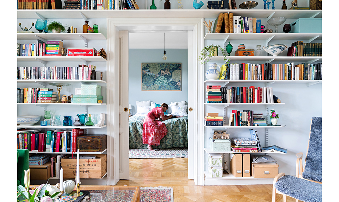 i libri, gli oggetti cari, cimeli e piccole collezioni, come quella di vasetti di vetro colorati.