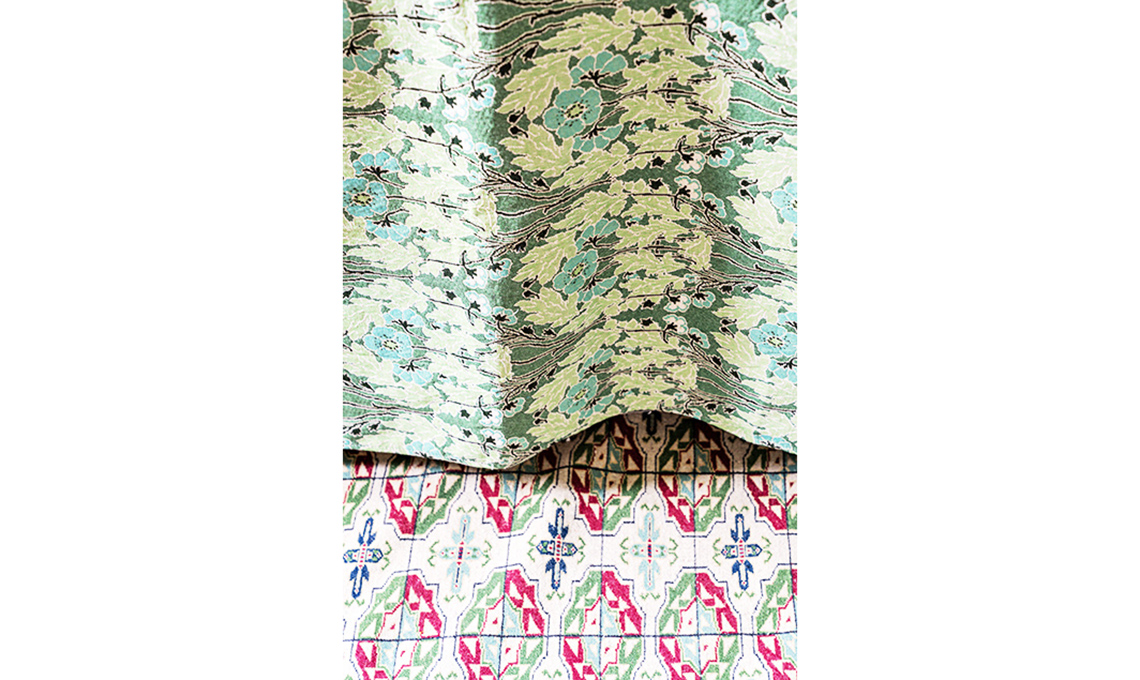 La scala dei verdi salvia e degli azzurri tenui, scelti nelle tonalità polverose, si abbina alla perfezione ai tessuti e alle wallpaper vintage dalle fantasie floreali o dai decori jacquard.