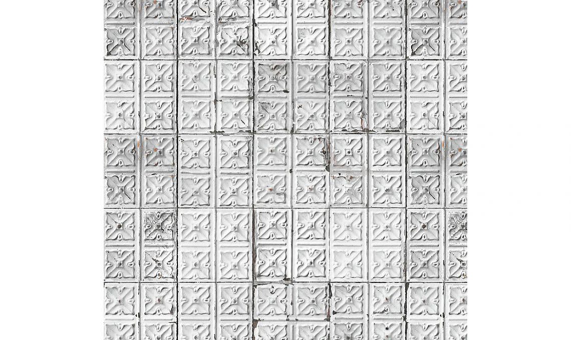 Effetto iper-realistico per la carta da parati Brooklyn tins di Merci [NLXL, m 10x48,7cm €219].