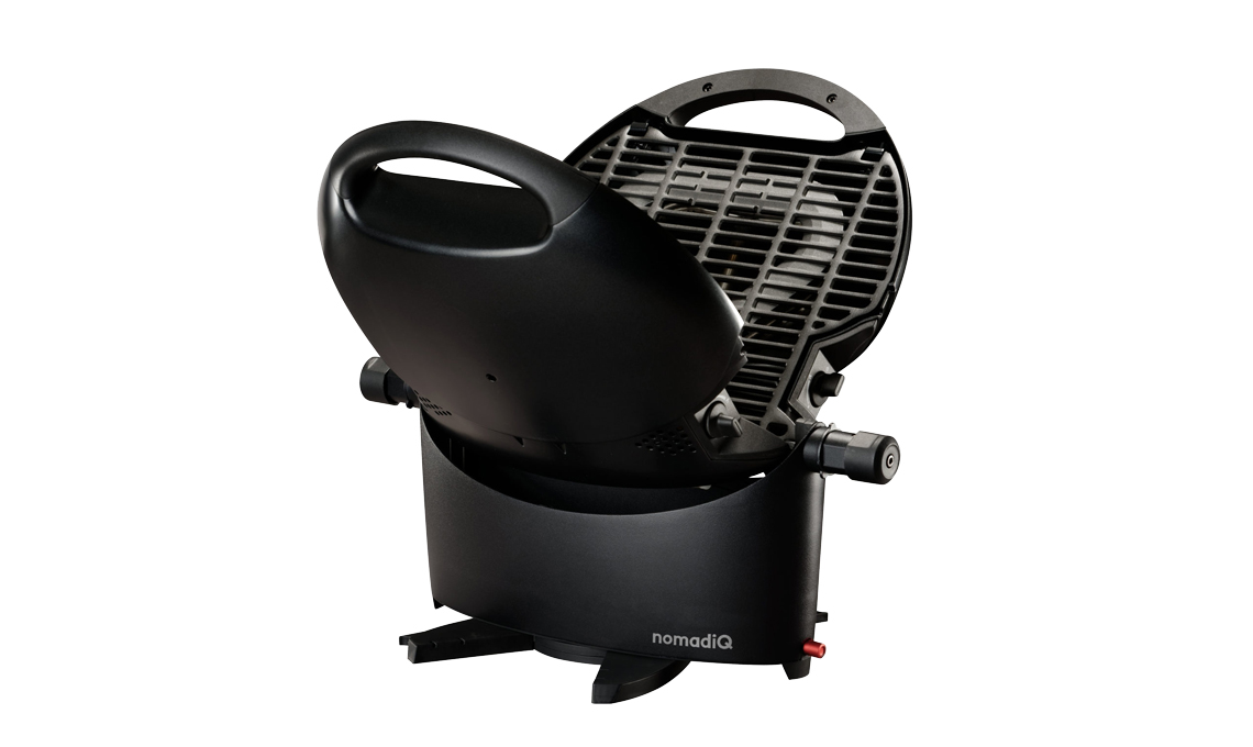 A gas, NomadiQ è pronto in un minuto. Ha griglie pieghevoli per raddoppiare la superficie di cottura [Manomano, cm 49x46x21h]