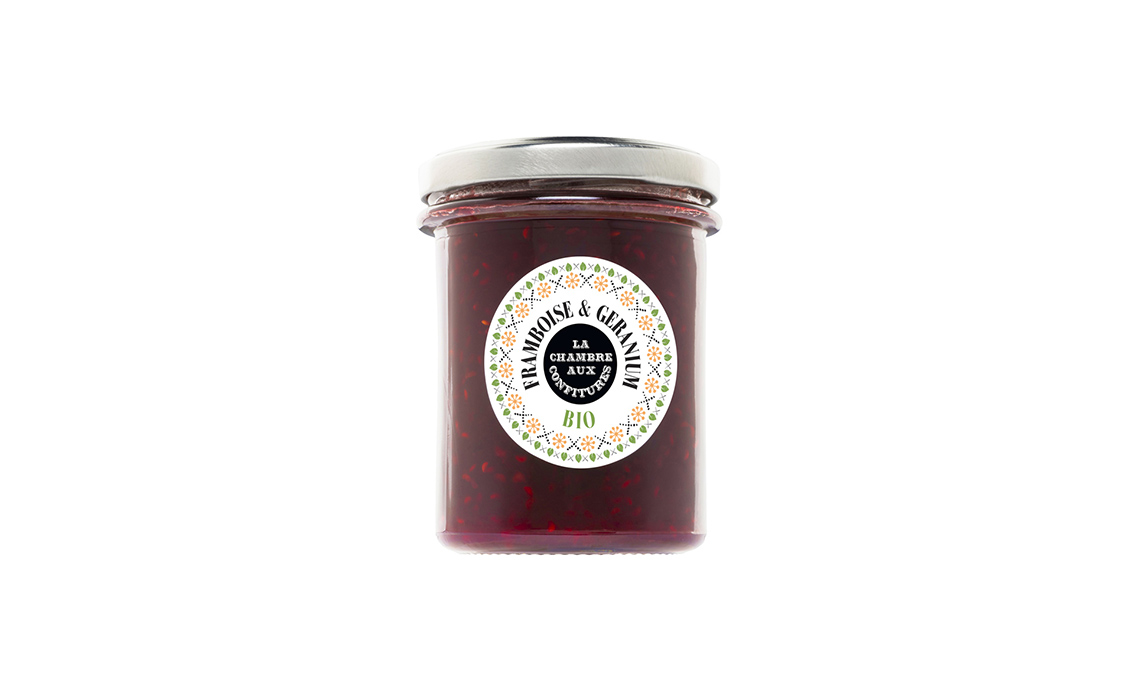 Framboise & Geranium fa parte della collezione bio e, oltre al geranio, il lampone è esaltato anche dal litchi e dalla rosa [La Chambre aux Confitures, €8,50].