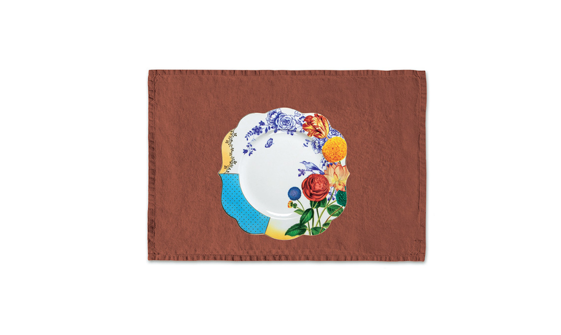 Toni terracotta per la tovaglietta americana [Merci €9], piatto Royal Pip di Pip Studio [da Amara €22].